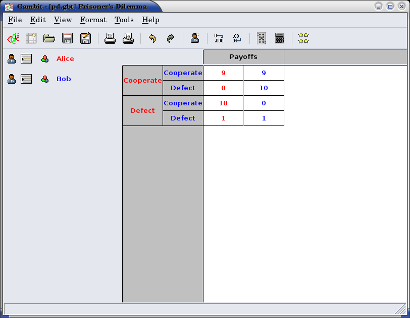 Alice’s (red) strategy choice, then by Bob’s (blue) strategy choice.